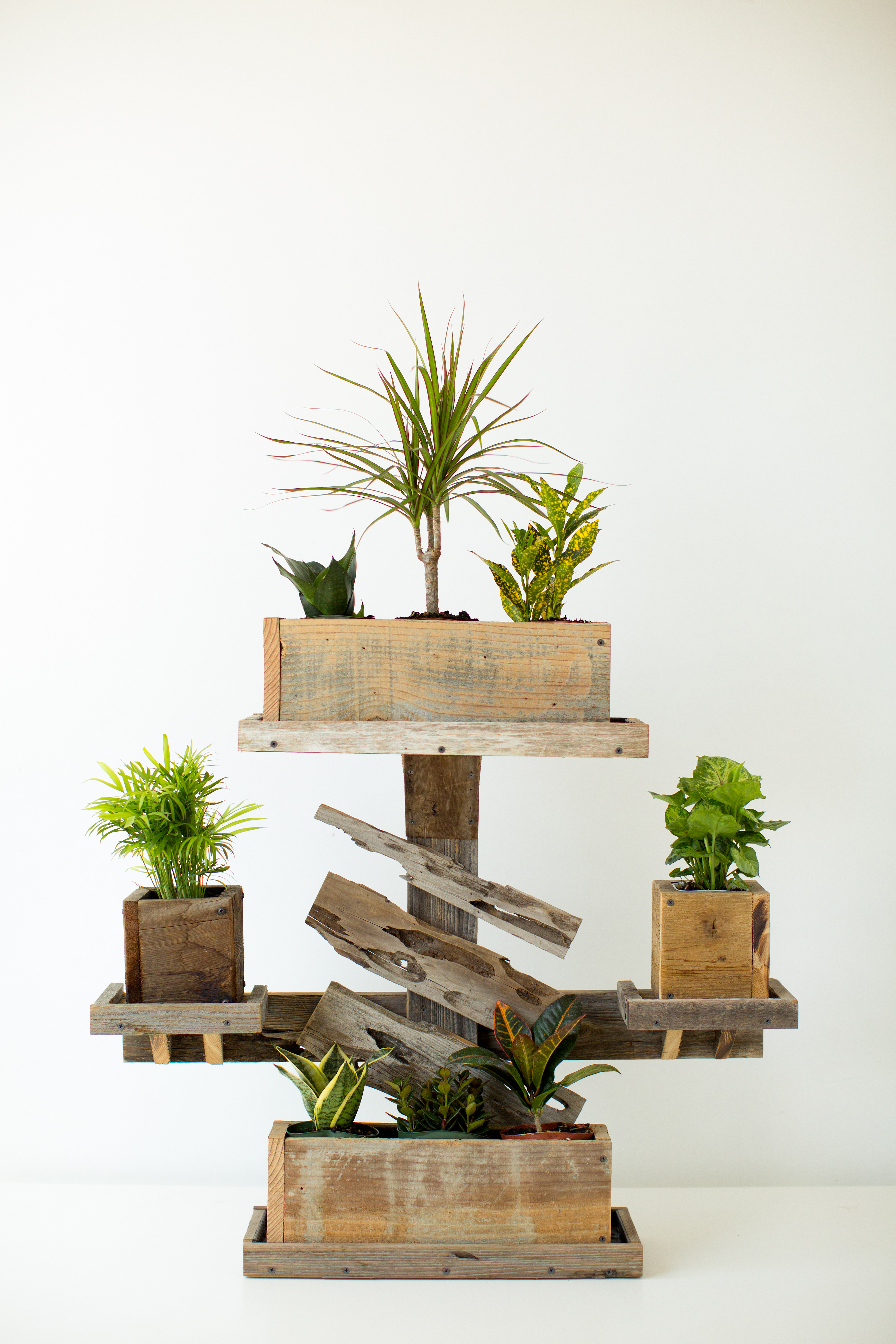 It all started with the planter. I was tidying up my office one fine day and as looked at a little house plant I had sitting on the back corner of my desk and thought, “I could gain some space and peace of mind if this were hanging on my wall.” I drew a little sketch on a post-it and put it in a drawer to be forgotten for a year. By the time it resurfaced, I had moved and accumulated some old scraps of wood. And so it was, my first planter, and first functional art piece was born.